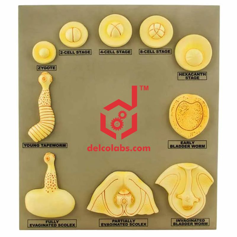 Clearly showing all stages of meiosis cell division in detail, beautifully coloured to show the details of chromosomes, as seen under the microscope. A set of 12 models, very useful for class-room, mounted on board with numbered Key Card.
