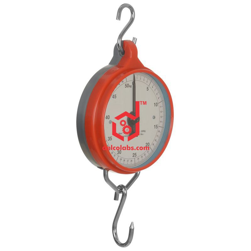 Dial type, circular scale and heavy pattern. Large dial with long pointer provides convenient reading even from a distance. With suspension ring and load hook. Economical, All metal body, with sheet metal dial and pointer.