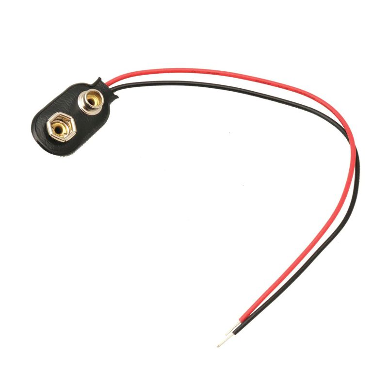 An insulated snap-on connector with 15 cm red and black leads. 9 Volt - I type
