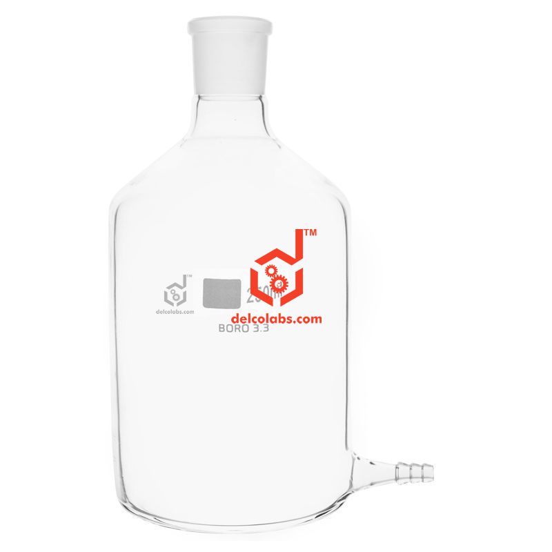 Made from high quality borosilicate Glass with side outlet for rubber tubing.