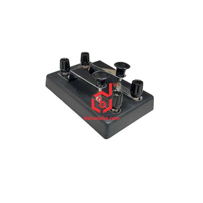 A contact arm & three metal studs mounted on a base with three brass terminals. The centre terminal is common connection to the arm & the other two terminals connected to the other studs.
