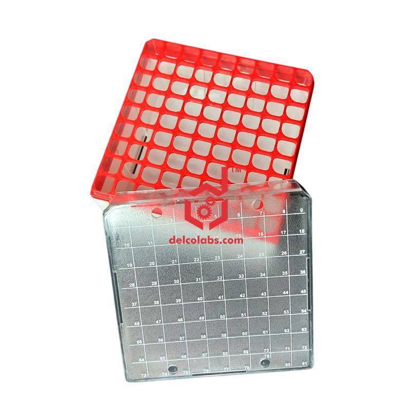 Cryo Boxes are moulded in polycarbonate making it extra strong and autoclavable. These can accommodate 81 pieces of 1ml or 1.8ml of Cryo Vails and are designed to be used at temperatures ranging from -90°C to 121°C. The transparent cover of the box gives a good view of the contents inside and is numbered for better inventory control.