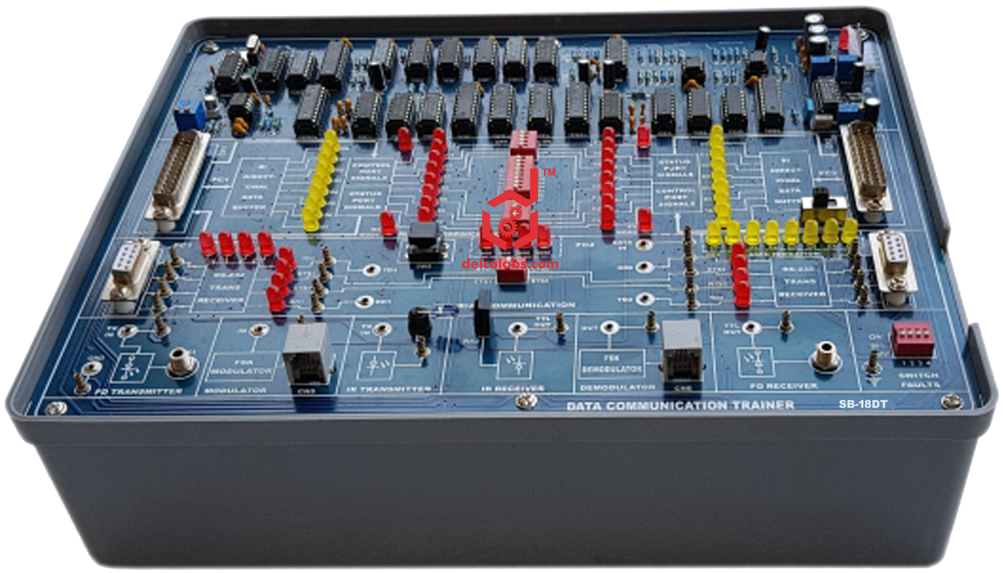 In Data Communication Trainer the switch faults are provided on-board to study different effects on circuit and 20 Nos. of test points are provided on board to observe various intermediate signals.