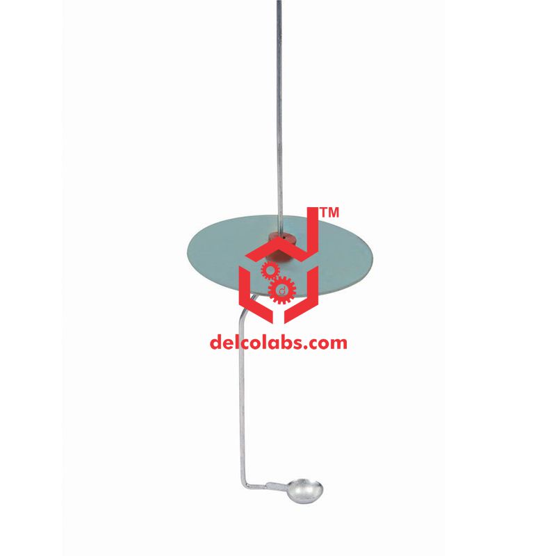Brass cup mounted at the end of steel wire, shaped to prevent contact with the container, with an adjustable aluminium disc held into position by a holed rubber stopper to keep it at the desired height from the brass cup. Overall length about length 35cm, diameter of disc 90mm and cup diameter 18mm.