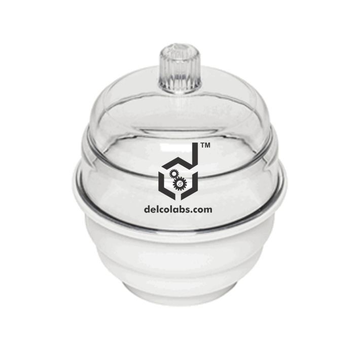 These Desiccators are without stop-cock. Moulded, crystal clear, top made of polycarbonate and bottom made out of chemical resistant polypropylene. Grease is required on the flanges to make the desiccator airtight. Supplied with thick perforated polypropylene plate with a big hole at the center for easy lifting and small holes providing air troughs and support to the dishes.