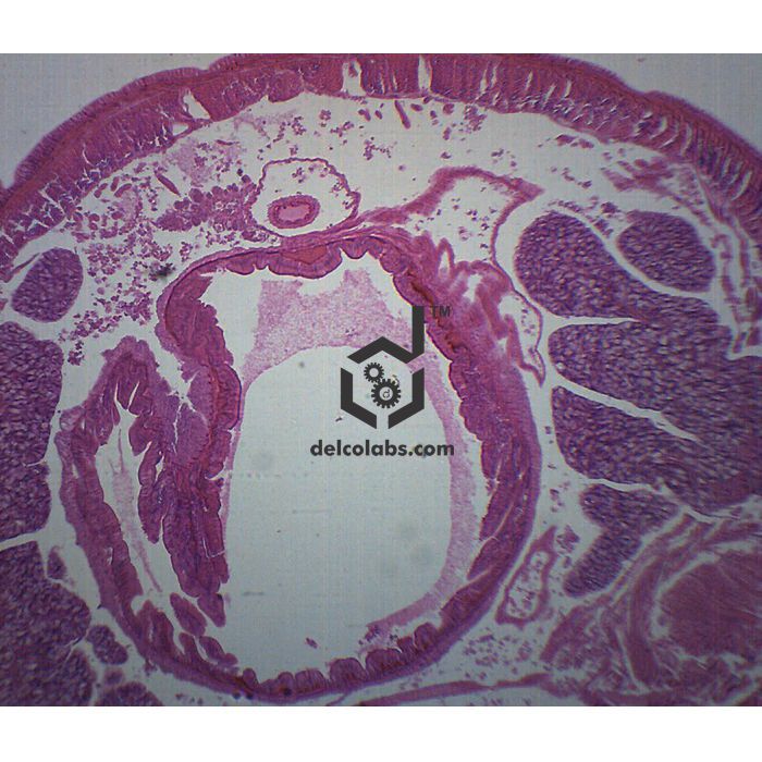 Single, prepared microscope slide of a cross section of an earthworm. Stained to clearly show characteristic structures. Great for biology classrooms to explore structure-function connections as per NGSS standards.   Slide measures 75x25mm approx.