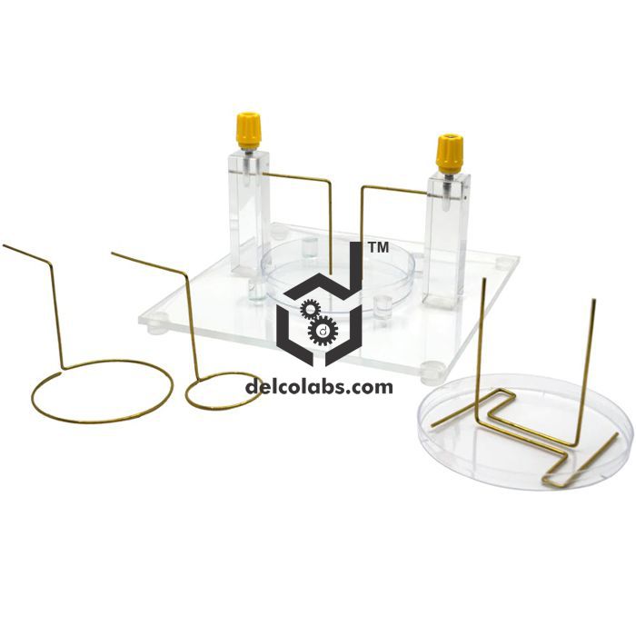 For investigation of electric field patterns due to various electrode configurations and also permits easy demonstration of the related concepts to a group of students through overhead projector. The apparatus comprises a clear plastic dish and a transparent Rectangular base carrying a pair of 4mm socket terminals that can also hold adjustable electrodes. Includes a set of 6 electrodes - two point source electrodes, two line source electrodes and two circular rings of 35 and 70mm diameter respectively.
