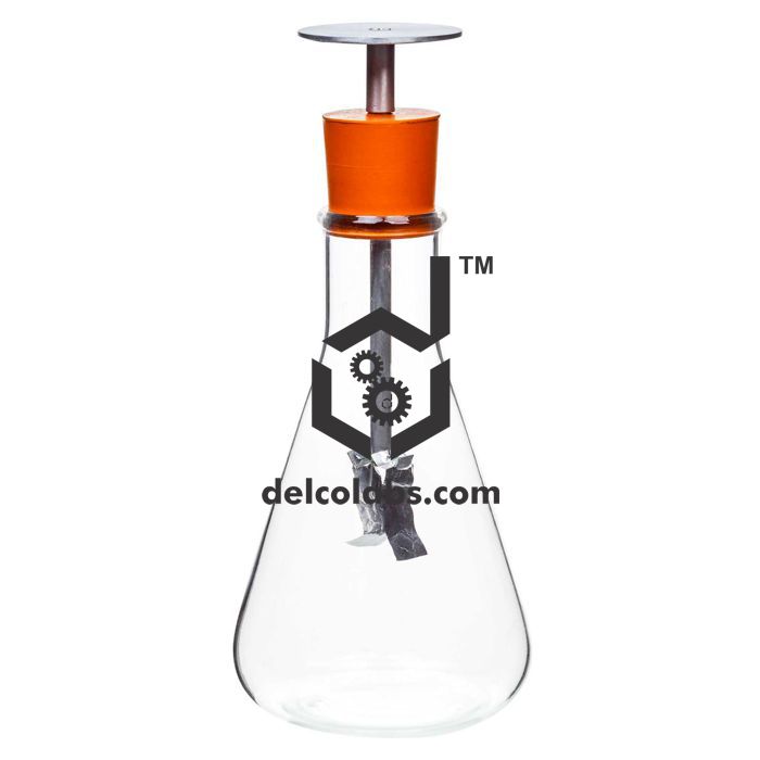 Comprises a glass conical flask, sealed at the top with holed rubber stopper. A metal rod supports a disc terminal at the top of rubber stopper and a pair of foil leaves suspended inside.