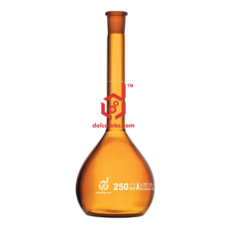 Amber Colour, with interchangeable plastic stopper. Accuracy as per Class-A, DIN. Made of Borosilicate glass.