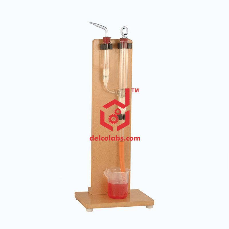 Mounted on wooden stand with beaker for water. Provides convenient demonstration to a group of students.