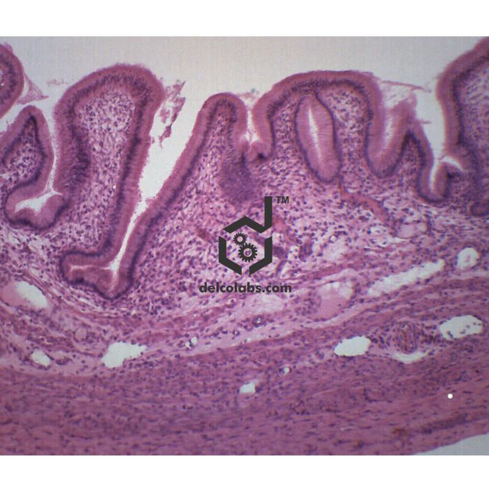 Single, prepared microscope slide with a cross section of mammalian gallbladder. Shows characteristic gallbladder tissues including columnar epithelium, serous membrane and muscular layers. Great for biology classrooms to explore structure-function connections as per NGSS standards.   Slide measures 75x25mm approx.