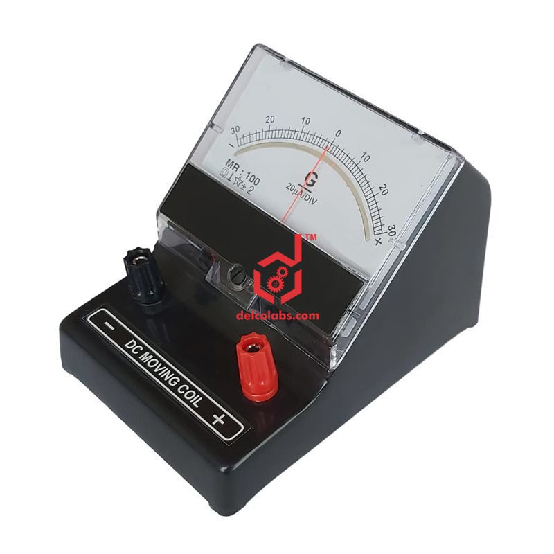 Moving coil meters with center zero, in case, for DC measurements.