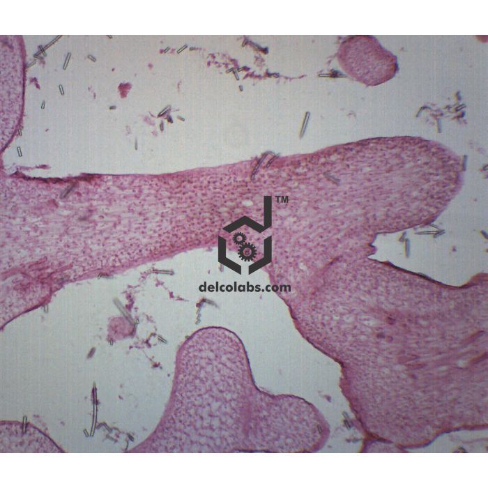 Single, prepared microscope slide of a longitudinal section of grantia, a genus of calcareous sponges. The slide is stained to show general structures such as incurrent and radial canals. Great for biology classrooms to explore structure-function connections as per NGSS standards.   Slide measures 75x25mm approx.