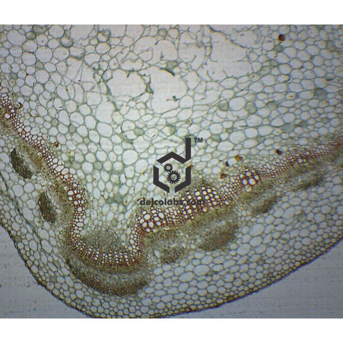 Single, prepared microscope slide of a cross section of herbaceous and woody stems. Side by side placement on the slides allows you to easily compare structures in the two types of stems. Shows characteristic structures. Great for biology classrooms to explore structure-function connections as per NGSS standards.   Slide measures 75x25mm approx.