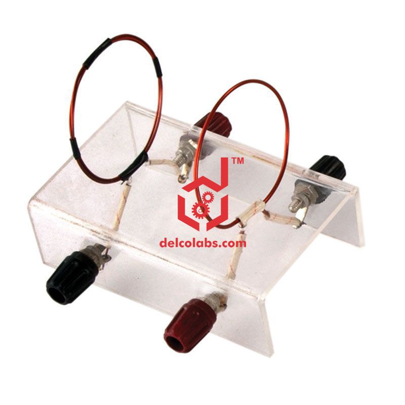 Vertical Coils: A set of 1 turn and 5 turn coils located side-by side on the base, each with separate pair of socket terminals. Maximum current for 1 turn coil is 8A and for 5 turn coil is 5A. By making the current flow through both of them, the cumulative effect of magnetic field of each can also be investigated.