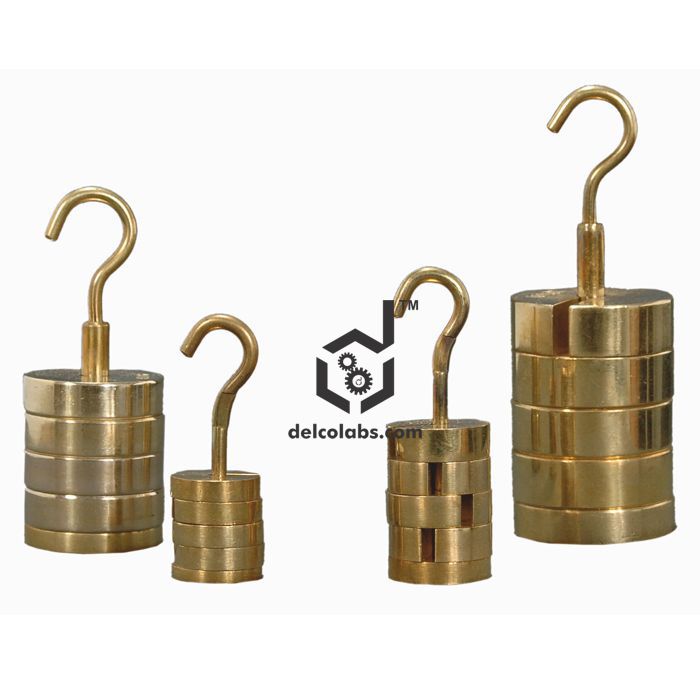 Precision turned brass masses and hangers for accuracy. Hanger made of brass wire with hook for convenient suspension along with slotted masses while use. Specially designed slot of the masses prevents the masses slipping off the hangers at the same time ensuring their effortless placing and removal from the hanger.