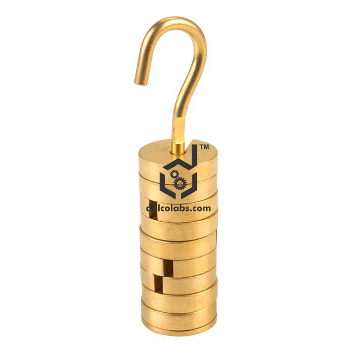 Precision turned brass masses and hangers for accuracy. Hanger made of brass wire with hook for convenient suspension along with slotted masses while use. Specially designed slot of the masses prevents the masses slipping off the hangers at the same time ensuring their effortless placing and removal from the hanger.