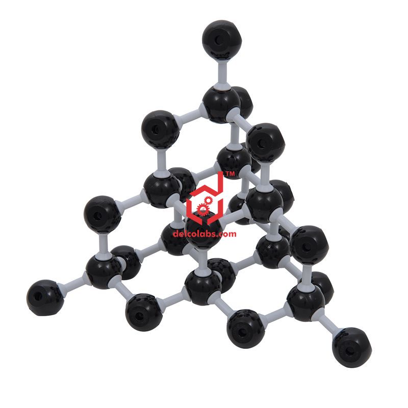 The molecular structure of the diamond is shown.  Diameter of atom parts ranges from 14 – 23mm. The molecular model of the Diamond is a great chemistry teaching tool. The molecular diamond model includes the following atom parts: