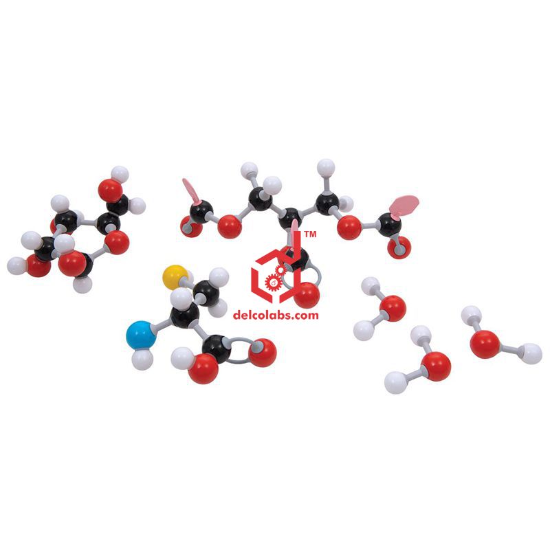 This set enables the teacher to demonstrate the key areas of Organic chemistry, including all the functional groups, alkanes, alkene, alkynes, alkylhalides, alcohols, ethers, aldehydes, ketones, carboxylic acids, nitriles, amines, esters, aromatic and heterocyclics. Structural isomerism and stereoisomerism (e.g. optical & geometric) and confirmational analysis. Examples : isoprene, lactic acid, glucose, P.V.C. , trichlorophenol, alanine, caffeine, saccharine, aspirin, menthol, benzene, ionone, humulone, adreniline, penicillin, & aromotherapy courses.