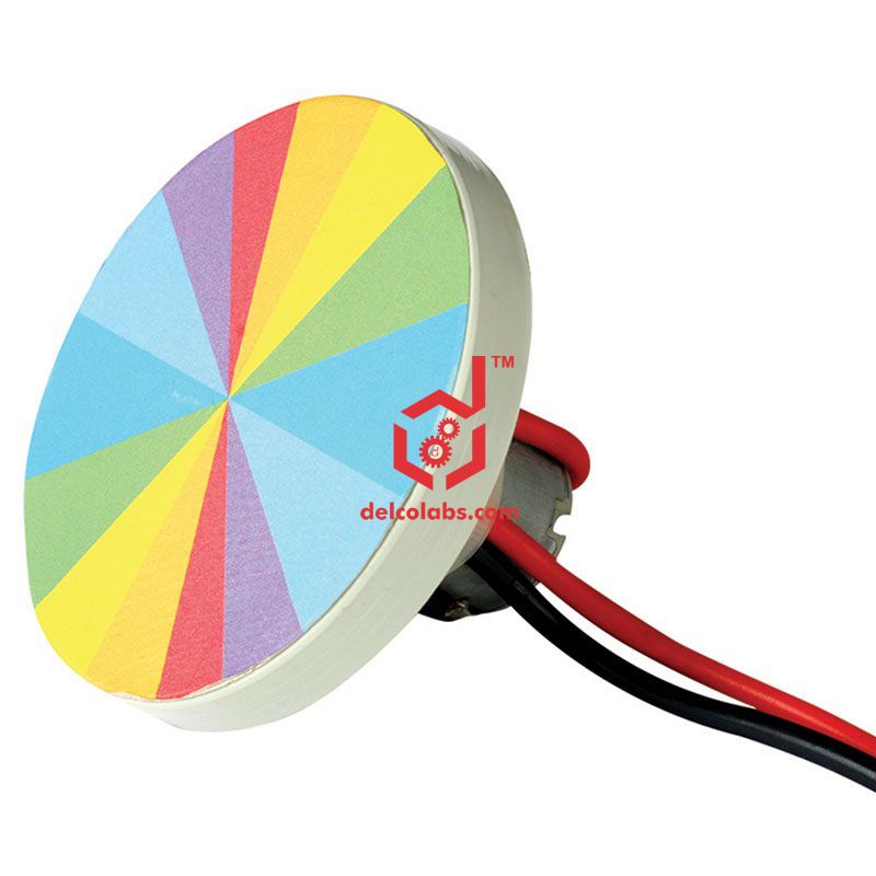 Comprising a multi-coloured circular disc of about 80mm diameter, having sectors of various spectral Colour in proper proportions, mounted on a low voltage DC motor. When the disc rotates all the colours are observed to disappear by merging into a single white colour. Provided with colour-coded wires terminating in 4mm banana plugs connected to the motor for power input. Operates on 6V DC (max.)