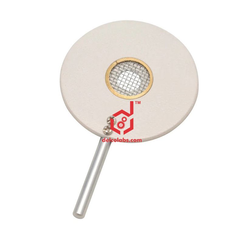 A circular metal screen 75mm diameter, with a 10mm central aperture covered with 1.5mm wire mesh gauze.