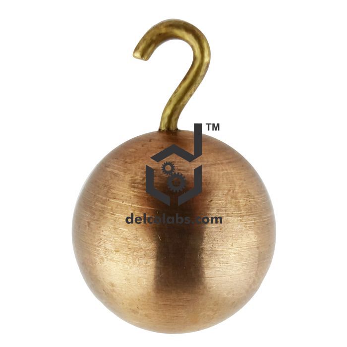 Spherical balls of copper material, with hook for suspension. Meant for use in pendulum experiments.