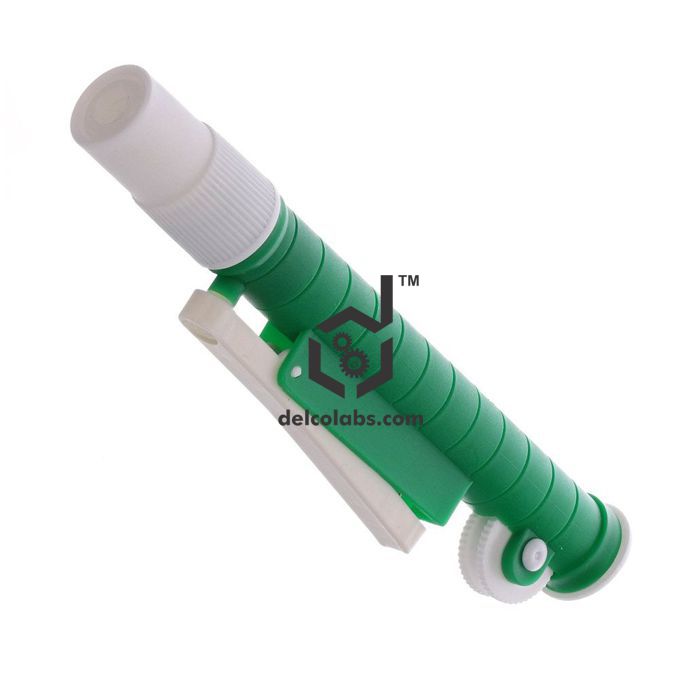A fast releasing pipetting device for precise pipetting and zip quick emptying. The knurled thumbwheel can be rotated to draw up or dispense precise amount of liquids while the releaser may be pushed in for rapid emptying. The moulded plastic chuck has a silicon rubber collect inside to hold various pipettes of standard sizes. Resistant to acids / alkalis. Useful for hazardous / corrosive chemicals. Easily disassemble for cleaning and maintenance.