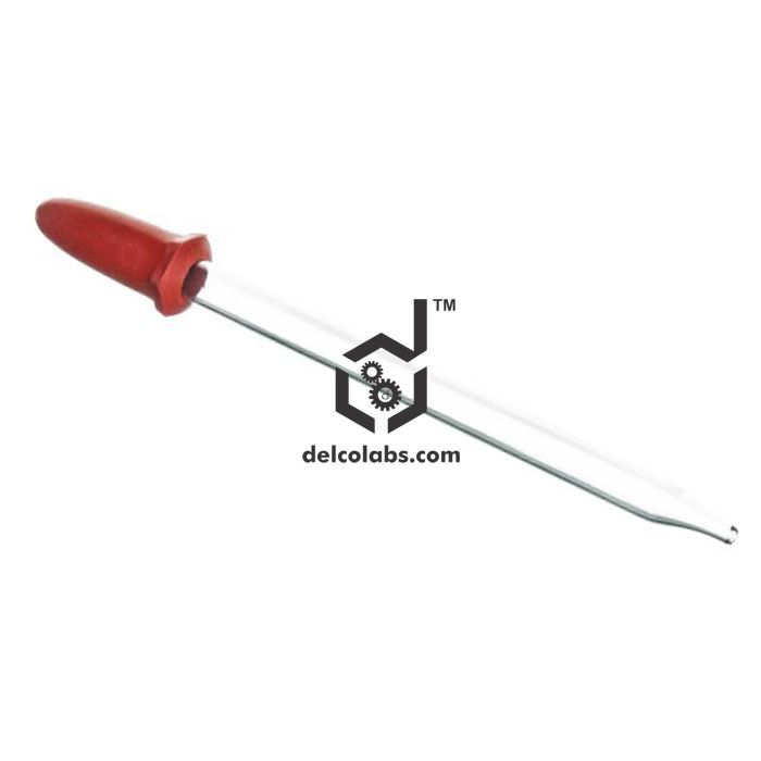 Approximate capacity 1.7mL, Rubber teat of length 40mm, overall length about 110mm.