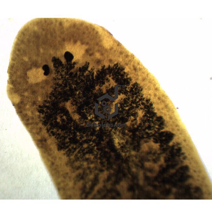 Single, prepared microscope slide with freshwater flatworms called Planaria. Carbon fed planaria shows enhanced visibility of digestive tract. Shows general structures. Great for biology classrooms to explore structure-function connections as per NGSS standards.   Slide measures 75x25mm approx.