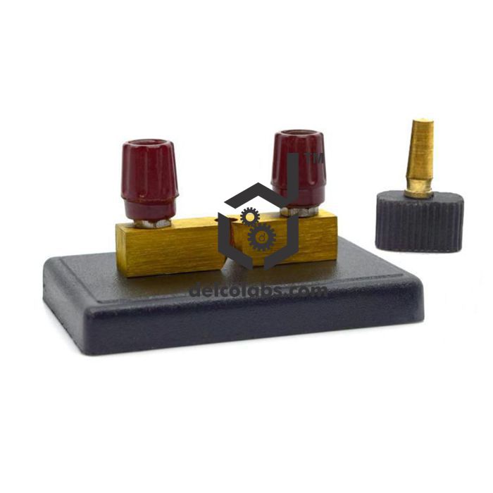 Comprising brass blocks each fitted with 4mm socket terminals and mounted on a moulded plastic base, along with accurately tapered brass plugs with a fluted plastic top to fit in to the hole between the blocks, thus providing a negligible contact resistance.