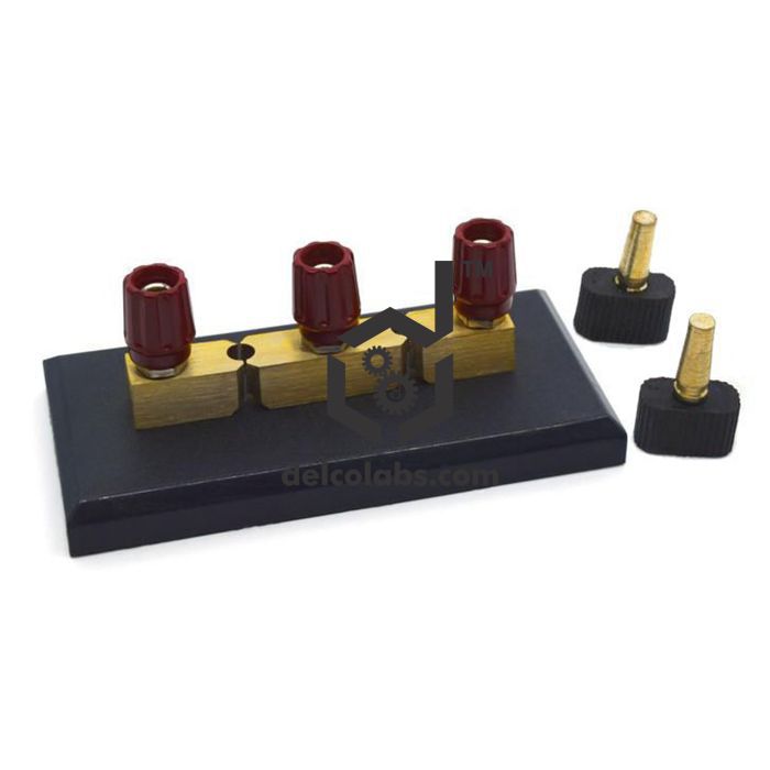 Comprising brass blocks each fitted with 4mm socket terminals and mounted on a moulded plastic base, along with accurately tapered brass plugs with a fluted plastic top to fit in to the hole between the blocks, thus providing a negligible contact resistance. A
