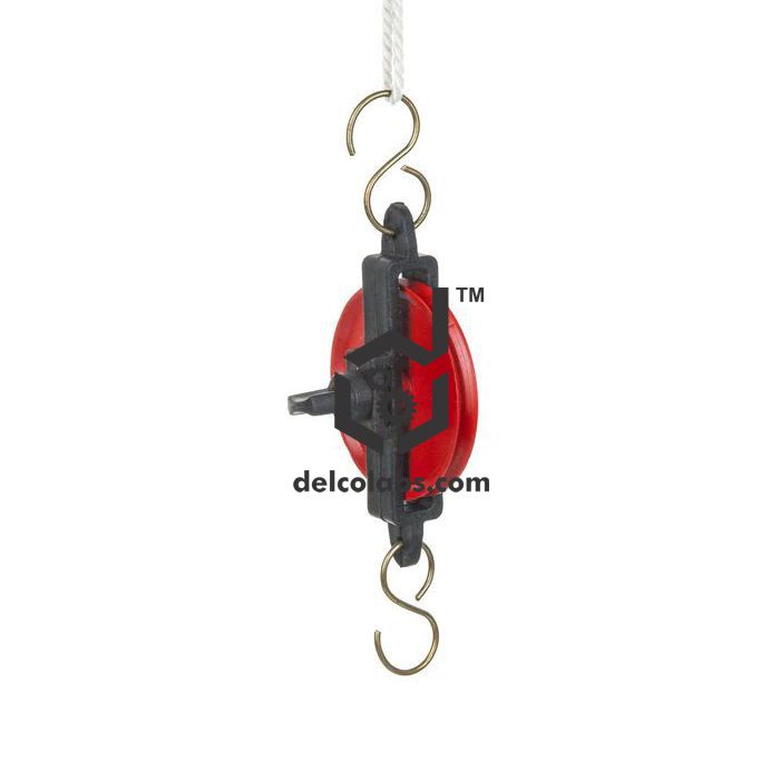 Plastic pulleys with wide groove for whip cord mounted in tough, unbreakable plastic frames having hooks at both ends for suspension and loading. The frames are available in single, double sheave and triple sheave. Specially designed central axle pin can be easily inserted and locked or removed for quick assembly / disassembly of the pulley block. A simple locking system prevents the axle pin from accidentally coming out. Overall length of frames about 70mm.