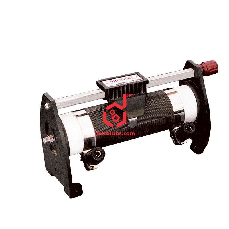 For use as series resistors or potentiometers. Comprises of eureka wire wound on a porcelain tube, supported at both ends on moulded plastic legs. Open type slide wire type with a variety of resistance and current carrying capacity. Copper-nickel alloy wire is oxidized to provide the desired insulation. Phosphorus bronze contact provided on metal chrome plated slider-rod to give rapid and smooth adjustment. Three 4mm socket terminals are provided – one at each end of the wound resistance wire and third one on one of the supporting legs and connected to the slider arrangement, enabling the use of rheostat as variable resistor or potential divider. Designed for continuous use without overheating. Total resistance in Ohms and current carrying capacities are marked on each rheostat. Pipe diameter approx. 43mm.