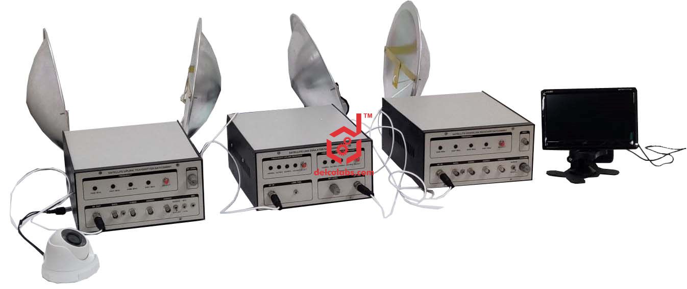 •    The Satellite Communication Lab provides an in-depth look at Satellite Communication Techniques and Concepts. It consists of Satellite Uplink Transmitter, Satellite Transponder Link and Satellite Downlink Receiver, which can be conveniently placed in the laboratory for experimentation. The Satellite Transponder Link also called as Satellite Emulator can also be placed at an elevated position if needed. The satellite transponder receives signals from uplink transmitter and retransmits at different frequencies to a downlink receiver. The uplink frequencies are selectable and can carry three signals video/data, audio/voice/tone (A1) and audio/voice/tone (A2) simultaneously. Any broadband signal or digital / analog data or square wave from function generator can be transmitted through this satellite link. A large number of experiments can easily be conducted. PC to PC Communication Link can also be established & studied.