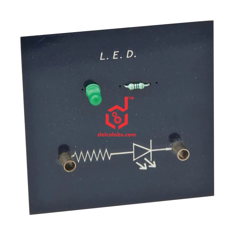 Large light emitting diodes with series resistor of 220 ohms for p.d’s of upto 6V. Green