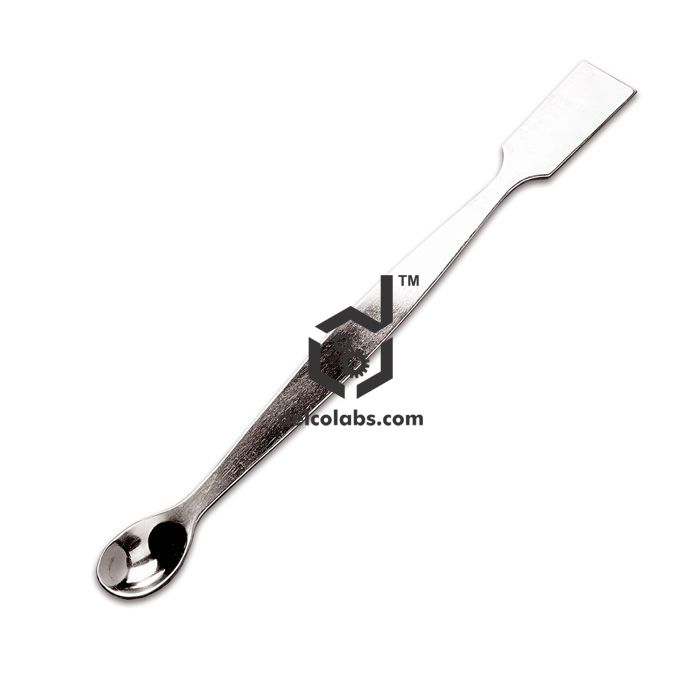 One end flat and the other end spoon form. Apart from holding powdered solids, spoon end is ideal for crushing lumps, breaking cakes etc., while the flat rectangular end is useful for scraping chopping etc.