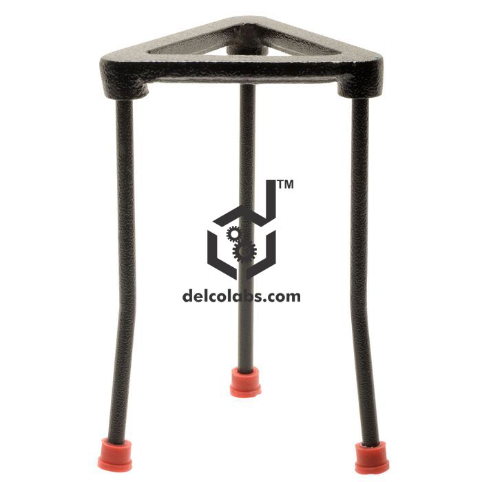 Triangular top of cast iron and mild steel legs. Finished in hammer tone / black colour. Lower end of legs are bent outwards for stability and covered with plastic cap to avoid scratching the work-surface.