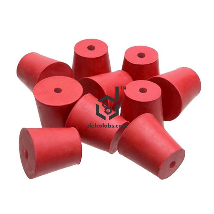 1 hole rubber stoppers; soft, superior quality rubber resistant to acid, alkali and ammonia. Number of cork indicated on the face. Packing size for the stoppers available as per customer's choice.