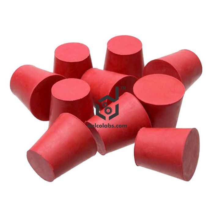 Solid rubber stoppers; soft, superior quality rubber resistant to acid, alkali and ammonia. Number of cork indicated on the face. Packing size for the stoppers available as per customer's choice.