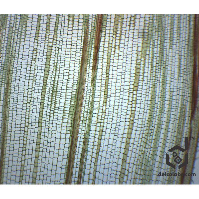 Single, prepared microscope slide of corn stem. Combination of cross section and longitudinal section. Shows characteristics of monocot stem features from two different points of view. Great for biology classrooms or home scientists.   Slide measures 75x25mm approx.
