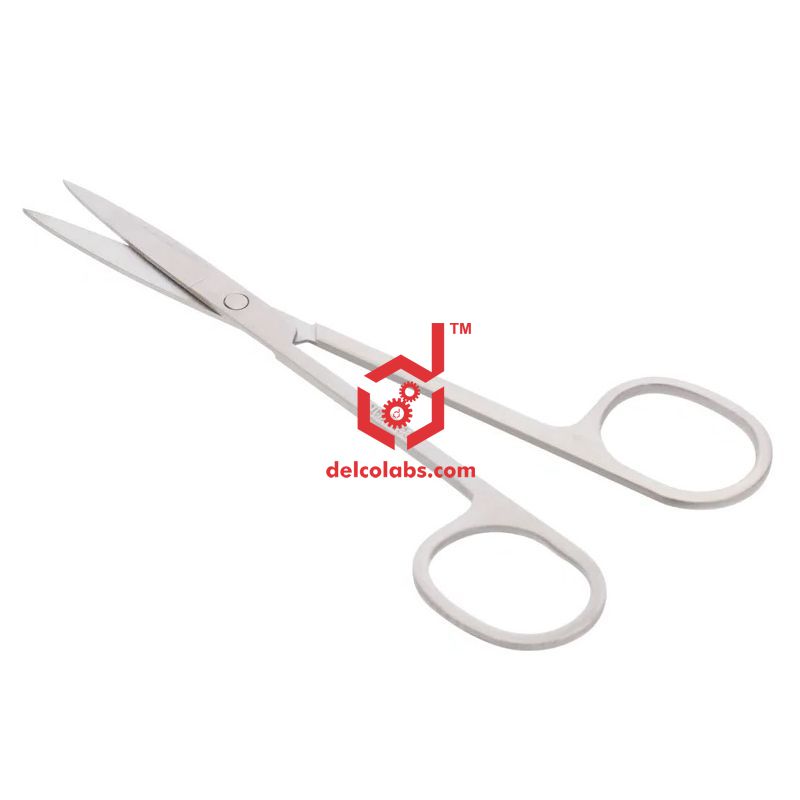 Stainless steel, open shanks, fine ends. These scissors are used to cut and separate the soft tissues.