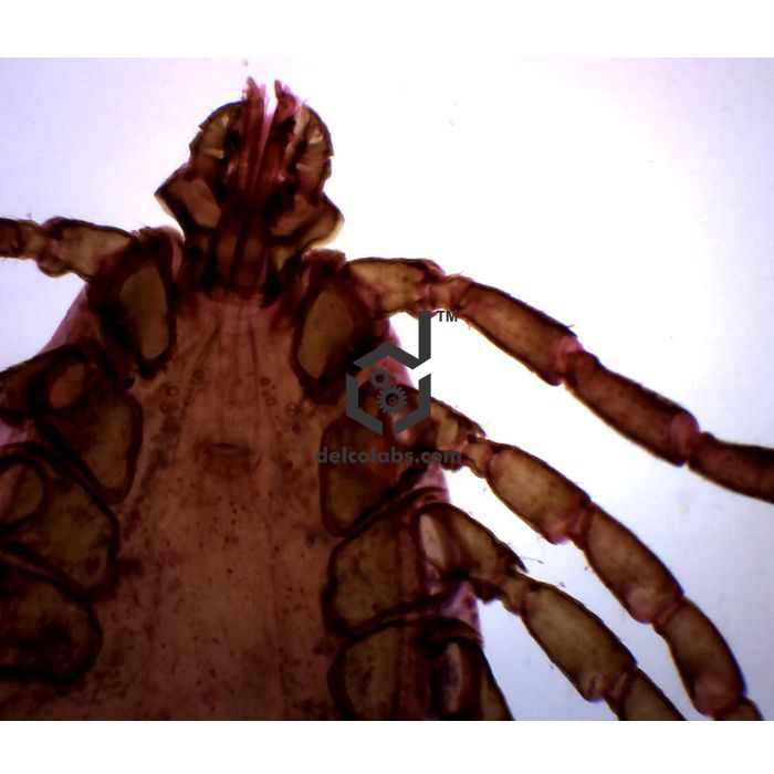 Single, prepared microscope slide of a whole mount tick. Shows general structures and tick body parts. Great for biology classrooms to explore structure-function connections as per NGSS standards. Each slide measures 75x25mm approx.