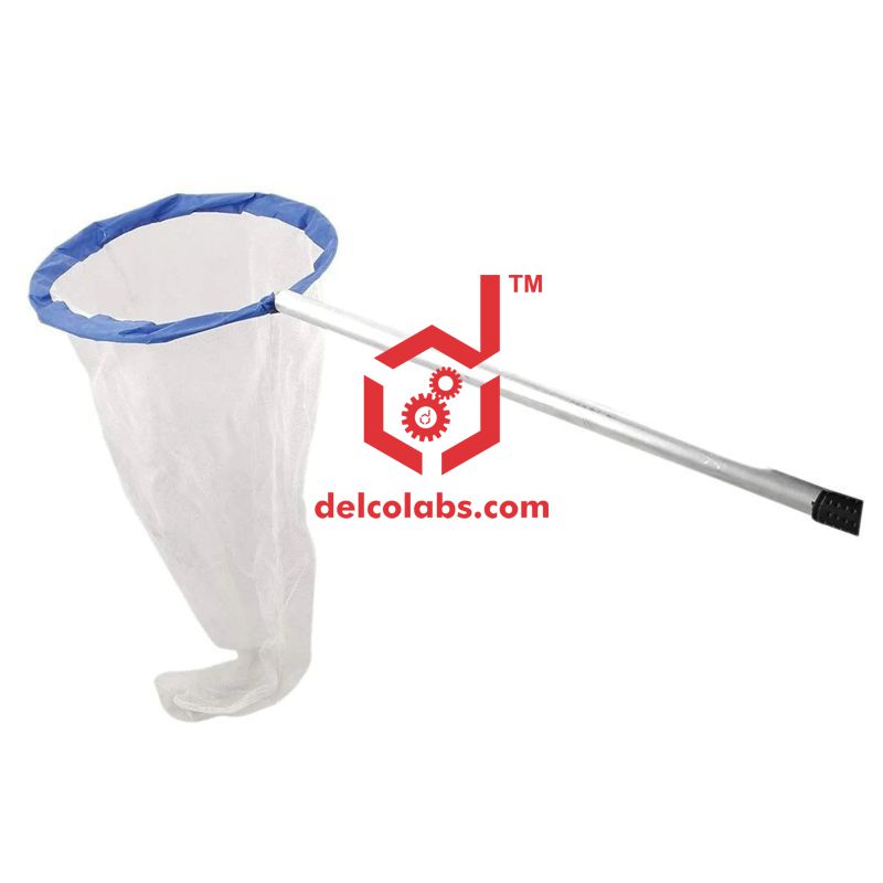 Insect collecting net with a 750mm aluminium handle with rubber grip at end. Made of strong muslin netting cloth with 180 micron mesh, which is attached to a 300mm diameter iron wire ring. Net is 75cm deep approx. - plenty of room for insects.